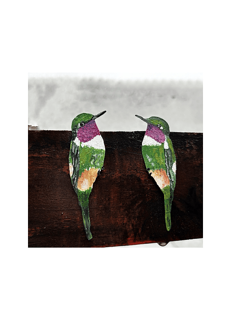 Pendientes o Aros ilustrados colibrí del norte posado